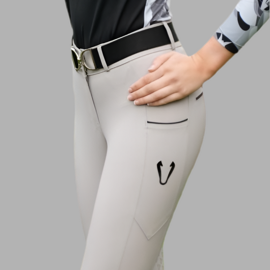 Pantalon équitation femme Vengoh Iris Breeches Light Grey Gris Clair - Taille haute galbante